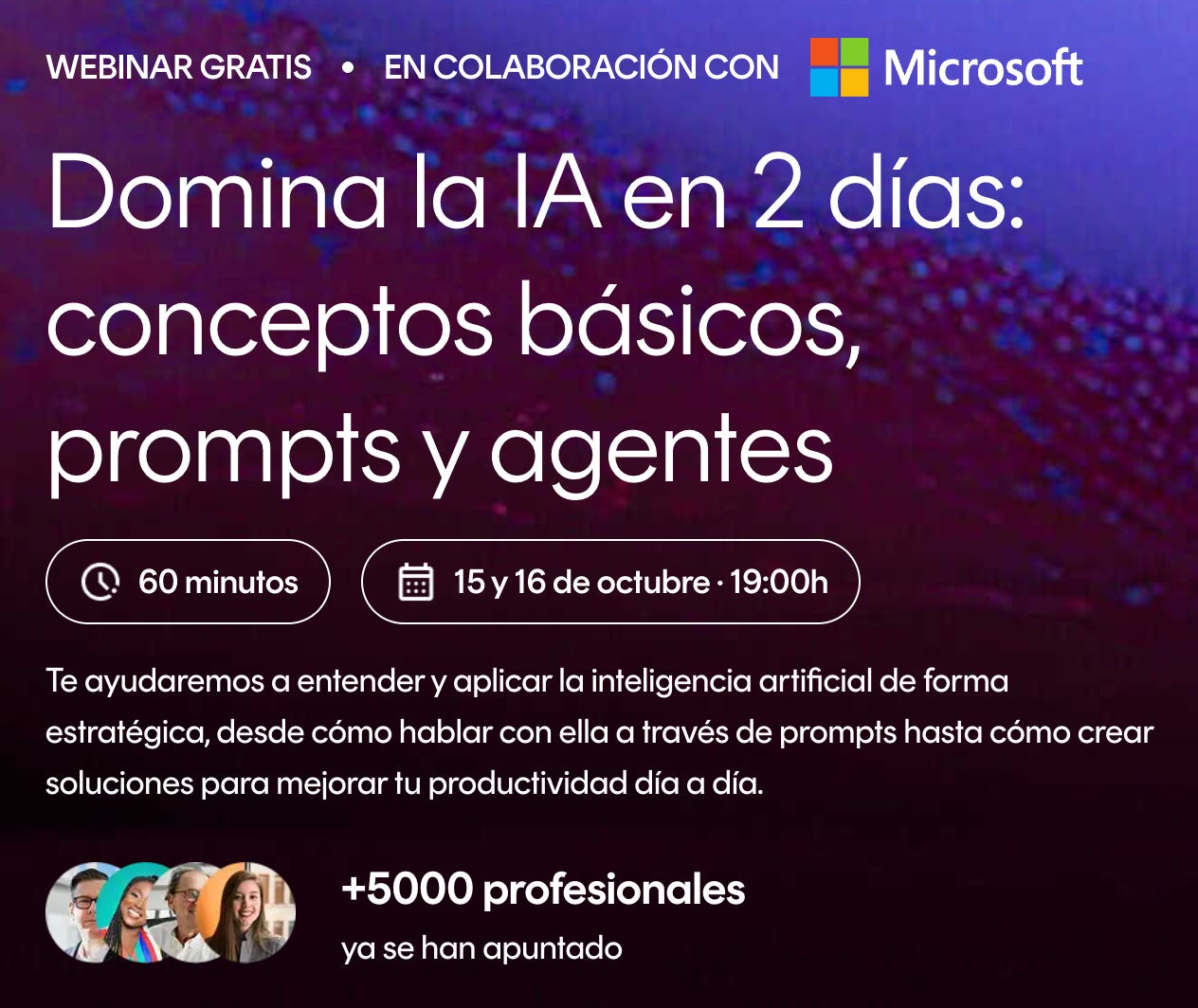 La próxima semana, los días 15 y 16 de octubre a las 19h, tienes una cita con los amigos de Founderz. La escuela de inteligencia artificial y emprendimiento que, junto a Microsoft o Freepik, te ayudará a mejorar cómo usas la IA. Ya han formado a miles de alumnos, muchos de ellos lectores de Tech 101, por lo que te recomiendo que te apuntes a este webinar de dos días, ya que es totalmente gratuito. Es un webinar muy práctico y no tienes por qué tener un perfil técnico. Regístrate aquí.
